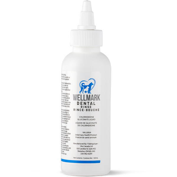 Wellmark Dental Rinse can be used daily to promote dental health, clean teeth and freshen breath in dogs and cats. This dental/periodontal liquid assists in the daily maintenance of a healthy and pleasant-smelling mouth.