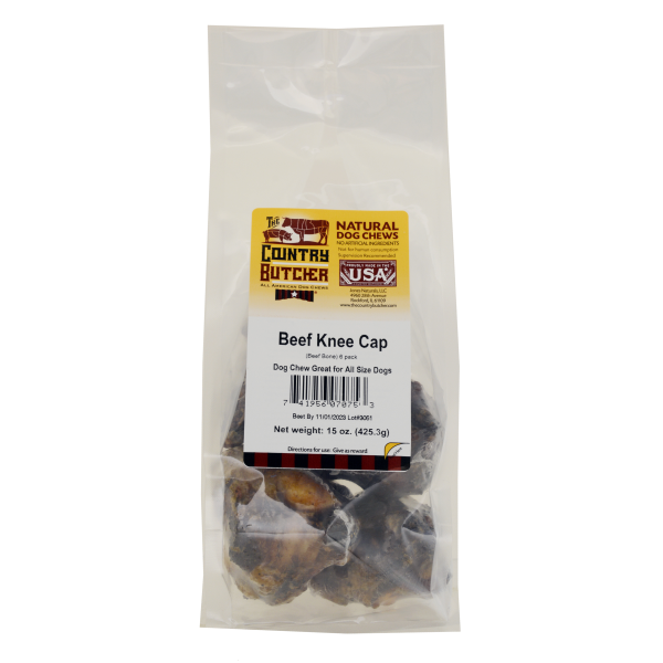 The Country Butcher Beef Knee Cap is one of their strongest and most durable bones. This Knee Cap is surrounded with meat and has a hint of liquid smoke to hit the spot! It does not contain any artificial ingredients and is a natural USA-sourced beef Knee Cap from the hind leg. All Country Butcher products are 100% grown and made in the USA. The Knee Cap is great for all size dogs.