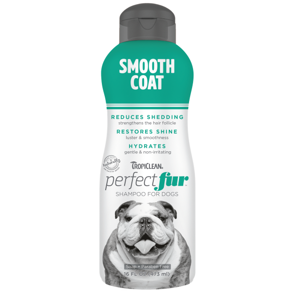 TropiClean Perfect Fur Smooth Coat Shampoo reduces shedding, restores shine, and hydrates. Perfect Fur Shampoo contains no soap, paraben or dyes and has a sweet citrus fragrance. It is specially formulated for the skin and fur of Bulldogs, Boxers, Pointers, Pit Bull Terriers, Greyhounds, and other breeds with smooth, skin-hugging coats.