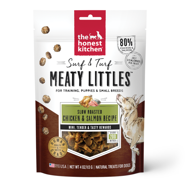 The Honest Kitchen believes the best way to get your pup to sit, stay or just behave is with super tasty, human grade treats! Their Surf & Turf Meaty Littles combine lots of cage free chicken and wild caught salmon to deliver a super craveable taste with an extra helping of protein to support strong muscles and DHA for optimal brain health. Perfect for training, treating and toys, your pup will flip for these tender bits of goodness.