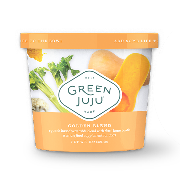 Golden Blend for dogs is a whole food source of vitamins, minerals, enzymes, & antioxidants. Phytonutrients found in plants have anti-aging, anti-degenerative and anti-cancer properties. High moisture content in vegetables hydrates the body, improving the condition of the skin and coat while helping boost bodily functions overall. Golden Blend includes squash, celery, beets, coconut oil, apple cider vinegar, ginger, & turmeric, all of which are organic. Free-range duck bone broth provides collagen in its natural moisture-rich environment to soothe and support the gut lining.