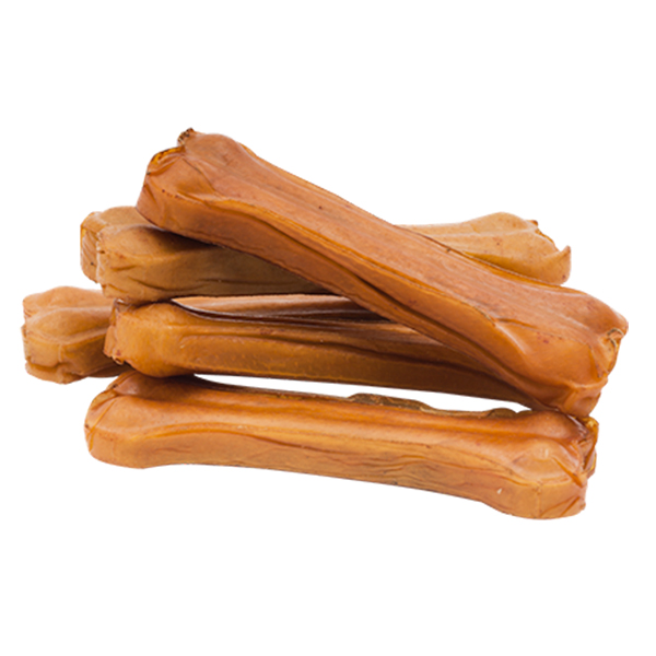 Canadian Brand. Rollover Large Pressed Porkhide Bones are 100% digestible porkhide, made from the inner layer of pork skin. No chemicals are used in the processing of these treats and porkhide is a much healthier alternative to traditional beef rawhides. Pressed Porkhide chews are harder than regular Rollover porkhide chews, therefore tend to last longer. These low fat, high protein treats help to clean the teeth while satisfying a dog's natural urge to chew and since they soften when chewed, are a great option for larger sized dogs from puppies to seniors. Each bone is approximately 8" in length & 1" thick.