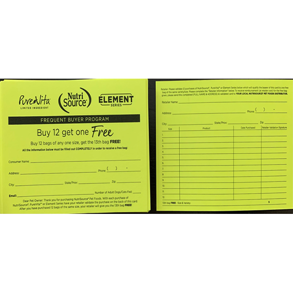 NutriSource Frequent Buyer Card Yellow (All Dry)
