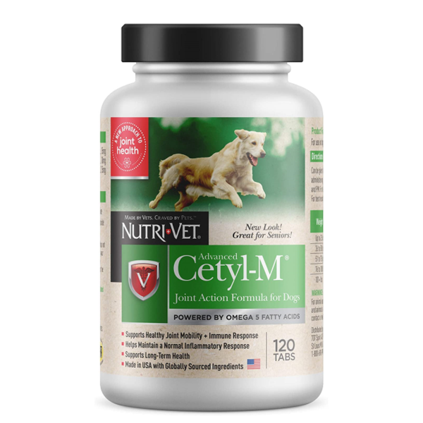 Powered by Omega-5 fatty acids, Nutri-Vet's Advanced Cetyl-M Joint Action Chewable Tablets support healthy joint mobility and immune response. Made in the USA with globally sourced ingredients, Cetyl-M helps support long-term health.